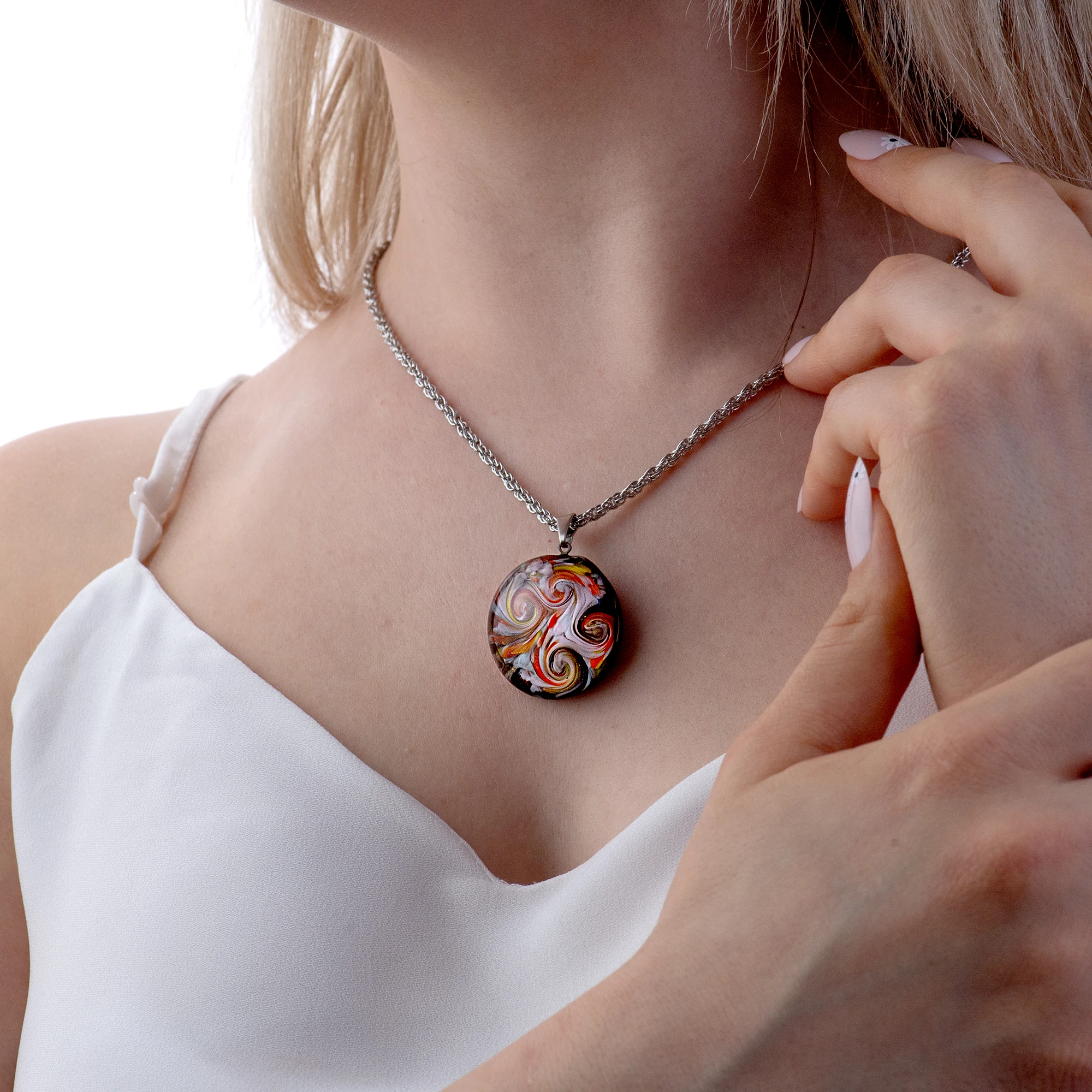 alevde Turuncu Lila Krem Dört Burgu Murano Cam Kolye ile tarzınıza zarif